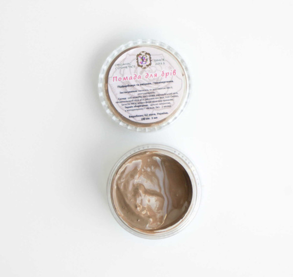 Помада для бровей содержит натуральные компоненты, которые не только успешно подкрашивают брови, а и укрепляют их. Это позволит отрастить волоски и сформировать линии изгиба, подходящие к типу лица.