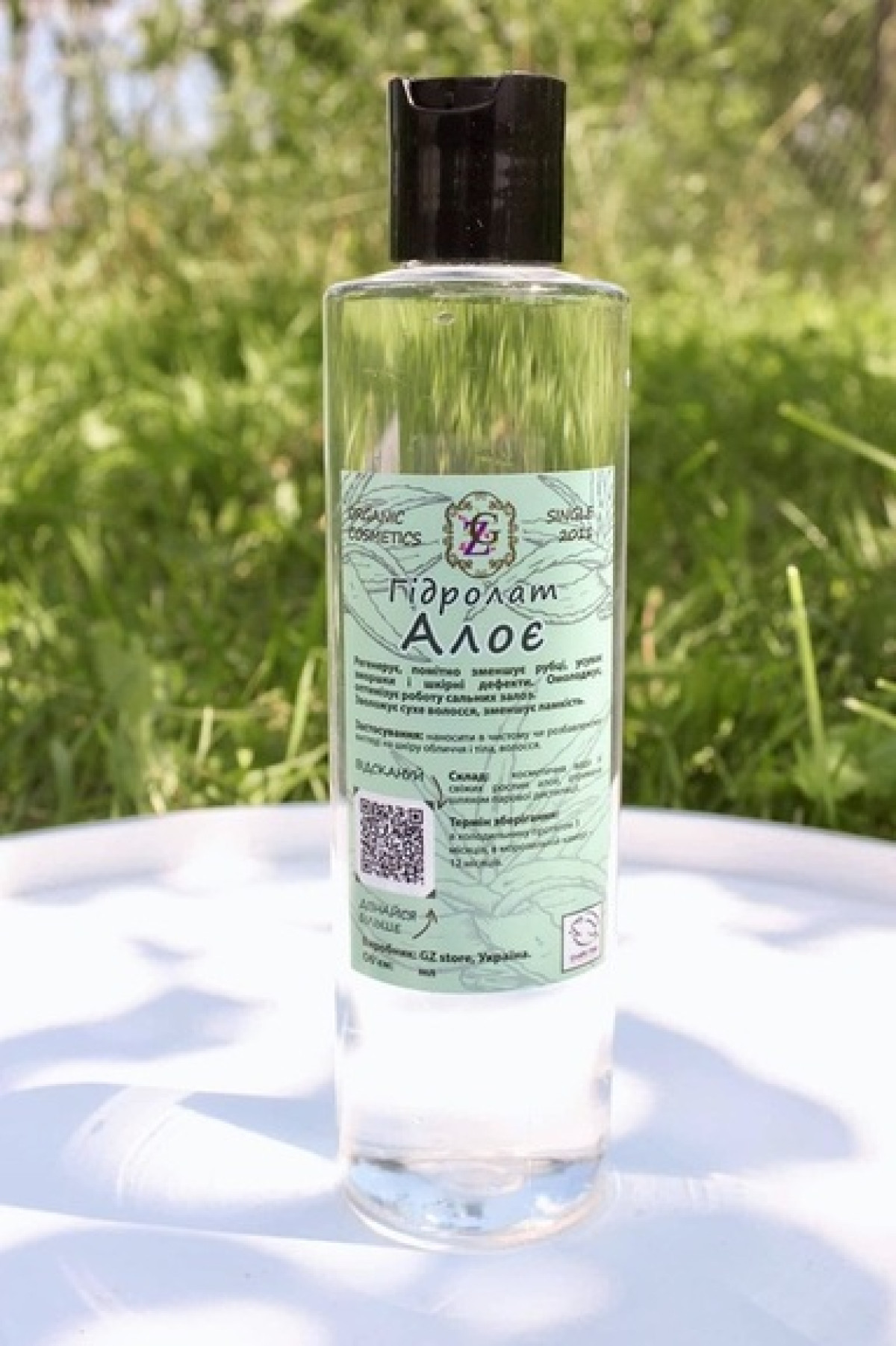 Натуральний гідролат алое високоефективний для догляду за обличчям, шкірою голови і волоссям, як у якості самостійного продукту, так і окремого елементу в комплексному складі засобів. Результативний гідролат алое як тонік для шкіри, вітамінна вода для обличчя, спрей для захисту волосся, косметичний натуральний лід і для ополіскування волосся після процедури миття.