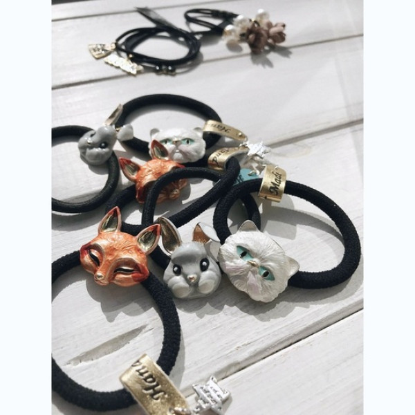 Резиночка для волосся Лисичка, Зайчик, Котик - комфортний і стильний аксесуар, представлений в реалістичному дизайні.