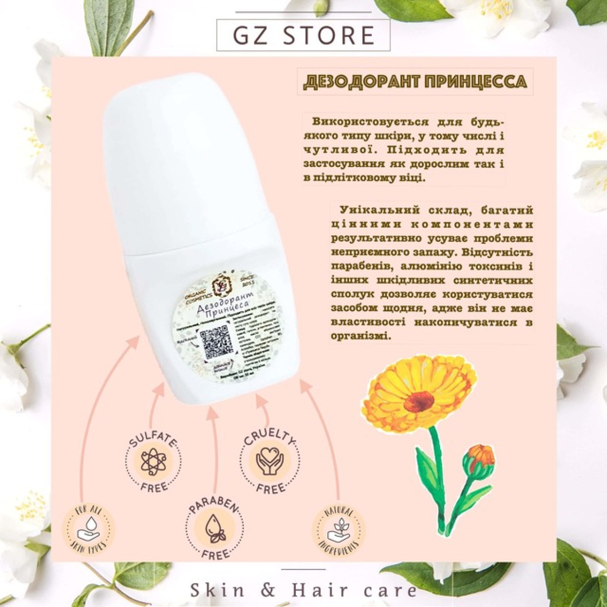 Шариковый женский дезодорант «Принцесса» создан на основе органического сырья. Он гипоаллергенен, не содержит парабенов, агрессивных консервантов и силиконов. Кроме того, этот дезодорант без солей алюминия, которым приписывают свойство накапливаться в организме, вызывая серьезные заболевания.