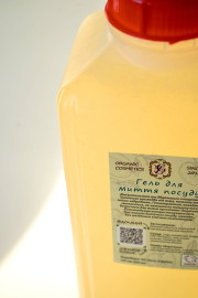 Натуральный гель для посуды используется так же, как обычные моющие средства. При появлении осадка нужно встряхнуть бутылочку.