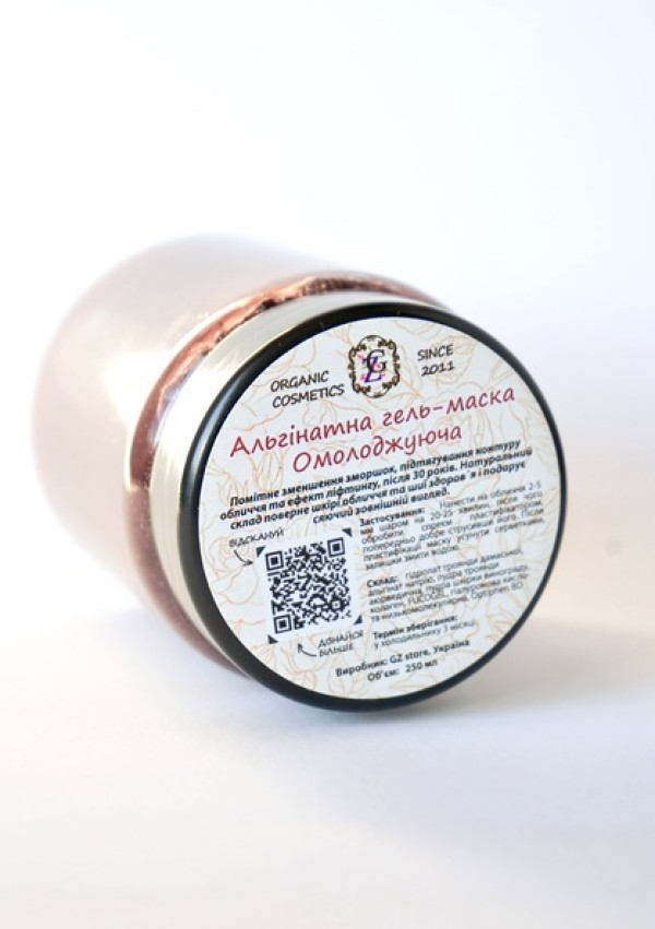 Состав: гидролат розы дамасской, альгинат натрия, пудра розы аюрведическая, пудра кожицы винограда, коллаген, FUCOGEL, гиалуроновая кислота низкомолекулярная, Optiphen BD.
