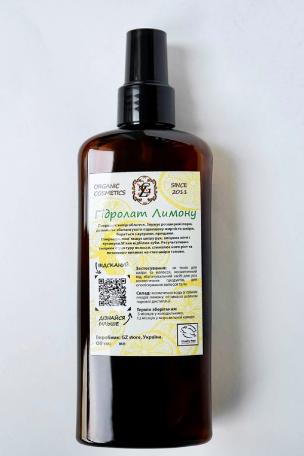 Гидролат лимона – органическое косметическое средство, предназначеное для ухода за жирной и проблемной кожей, а также для устранения угревой сыпи и прыщей. Лимонная натуральная вода эффективно отбеливает кожу, возвращает ей красивый однородный цвет, осветляет веснушки и пигментные пятна. Также применяется для волос, придает им блеск и мягкость. Высококачественное уходовое средство для кожи рук, укрепляющее ногти и смягчающее кутикулу.