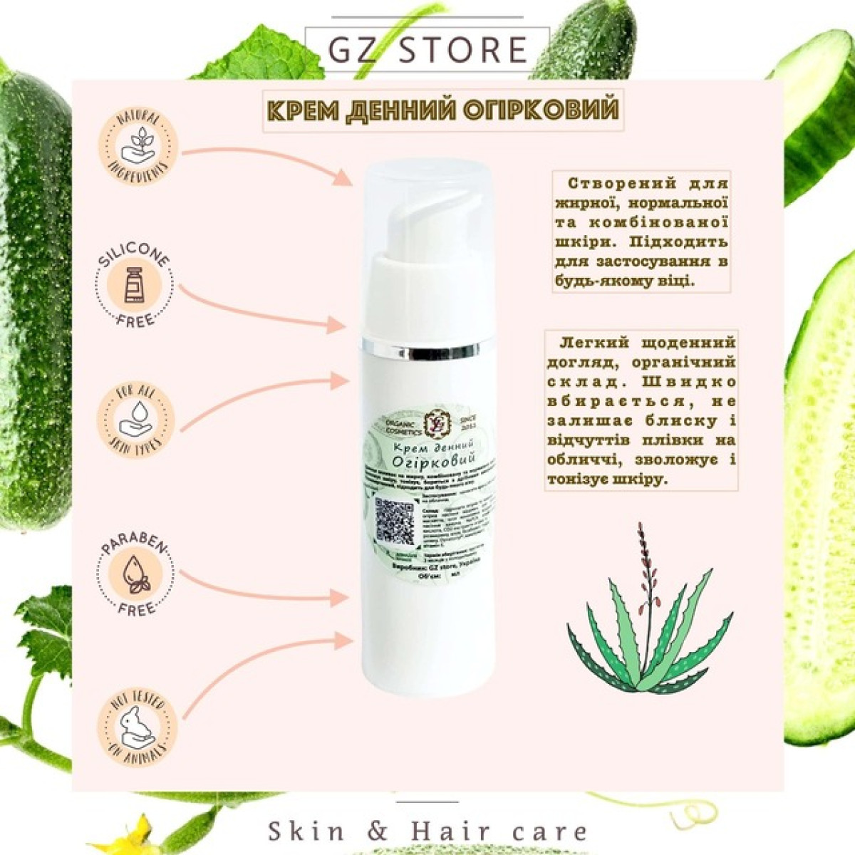 Огуречный крем подходит для жирной, нормальной и комбинированной кожи. Легкий ежедневный уход, органический состав. Быстро впитывается, не оставляет блеска и следов, увлажняет и тонизирует кожу.