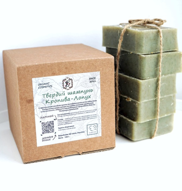 Твердый шампунь для волос «Крапива–Лопух» – спасение при начинающемся облысении. Активные натуральные компоненты укрепляют волосяные луковицы, действуя против выпадения волос. Также они устраняют перхоть, придают объем прическе.