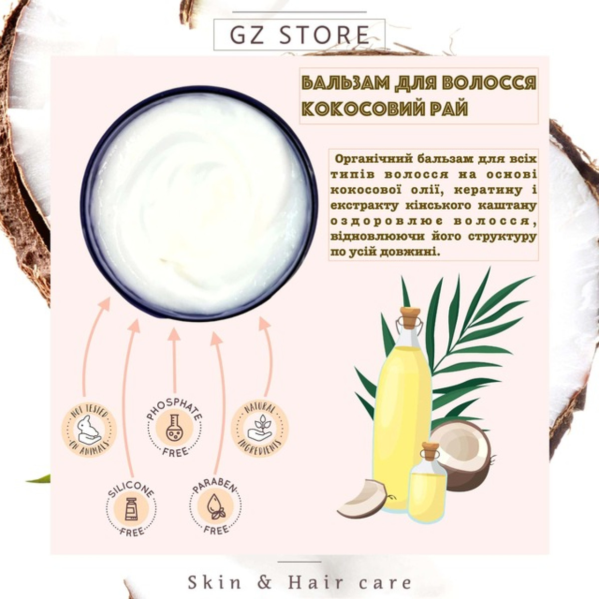 Бальзам для волосся Кокосовий рай бореться з ламкістю й сухістю волосся, мінімізує кількість посічених кінчиків. Тому, використовуючи його регулярно у тандемі з натуральним шампунем, можна відростити бажану довжину локонів, які будуть виглядати доглянутими, блискучими і здоровими.