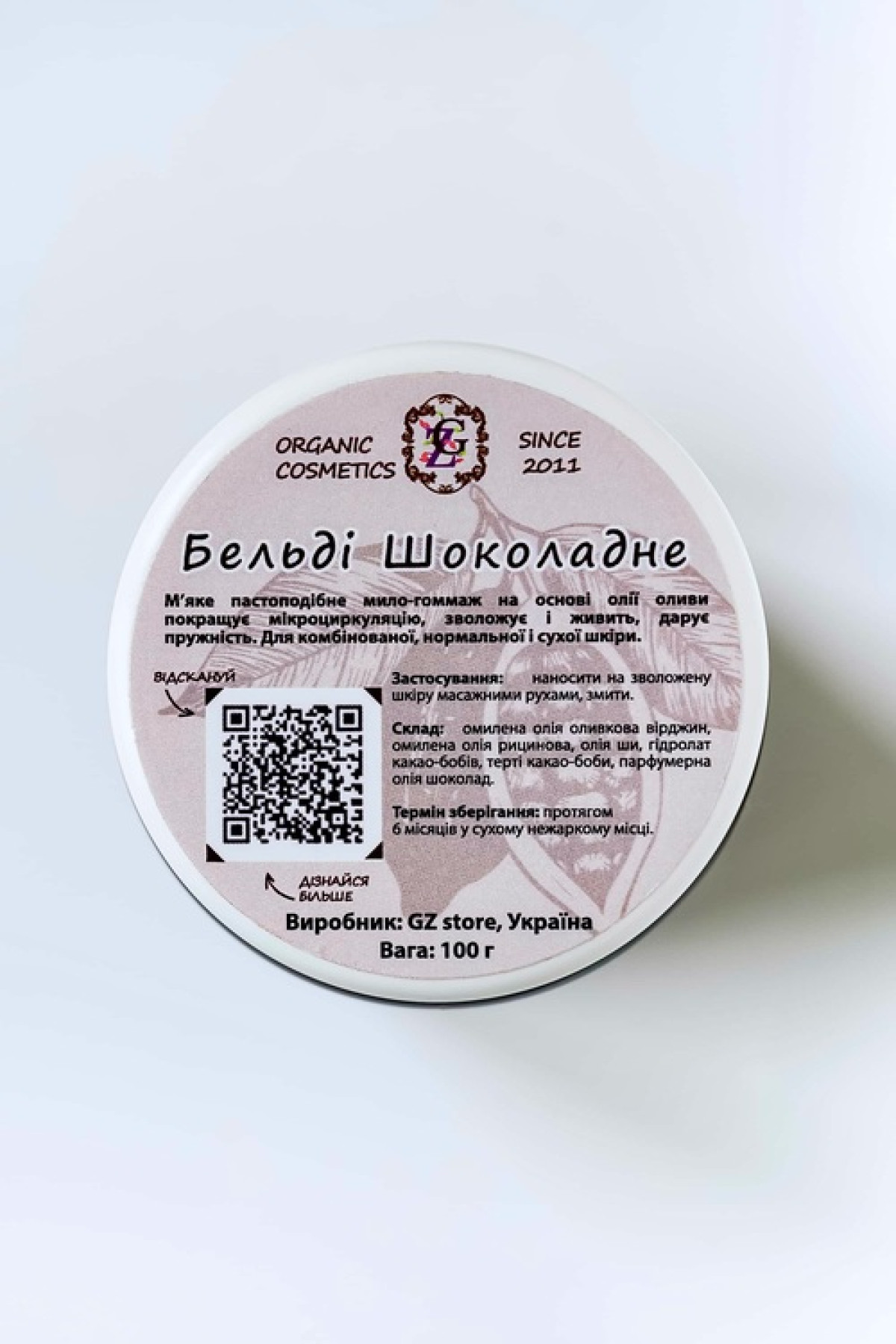 Бельді шоколадне це м'яке пастоподібне мило, багате на вітаміни, амінокислоти і антиоксиданти. Завдяки повністю натуральному складу бельді чудово очищує епідерміс, усуваючи при цьому ороговілі клітини, забруднення і надлишки секрету роботи сальних залоз.