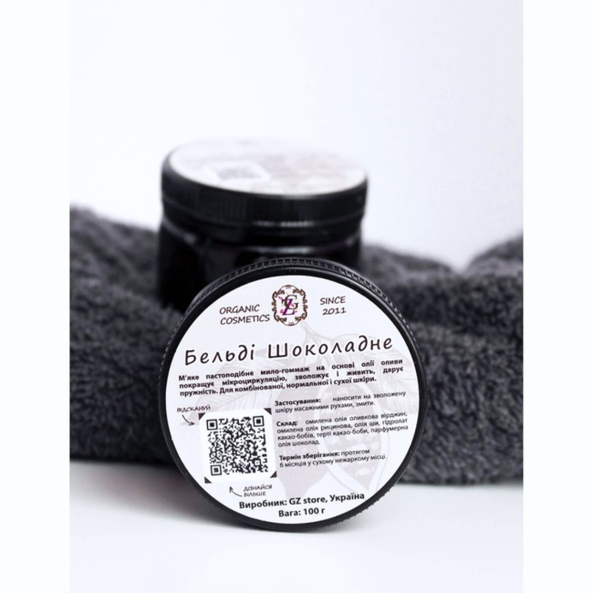Бельді шоколадне це м'яке пастоподібне мило, багате на вітаміни, амінокислоти і антиоксиданти. Завдяки повністю натуральному складу бельді чудово очищує епідерміс, усуваючи при цьому ороговілі клітини, забруднення і надлишки секрету роботи сальних залоз.