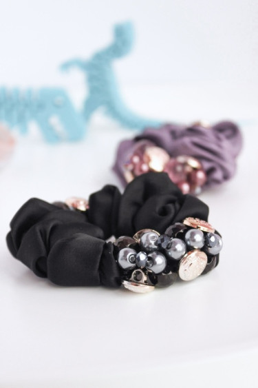 Резиночка для волосся Ексклюзив - шовкова Чорна