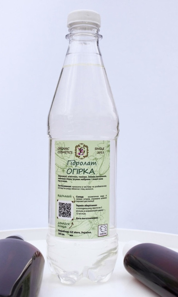 Гідролат огірка - продукт, що визнаний одним з найкращих косметичних засобів з очищаючими, поживними, освіжаючими і відбілюючими властивостями. Ідеальний догляд забезпечить гідрозоль огірка для всіх типів шкіри, зволожить епідерміс і збереже баланс вологи у ньому на оптимальному рівні.