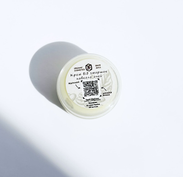 Органічний крем від зморшок не містить агресивних компонентів, тому підходить для чутливої ​​шкіри. Натуральні складові забезпечують м'який догляд, тонізування, зволоження ділянок під очима.