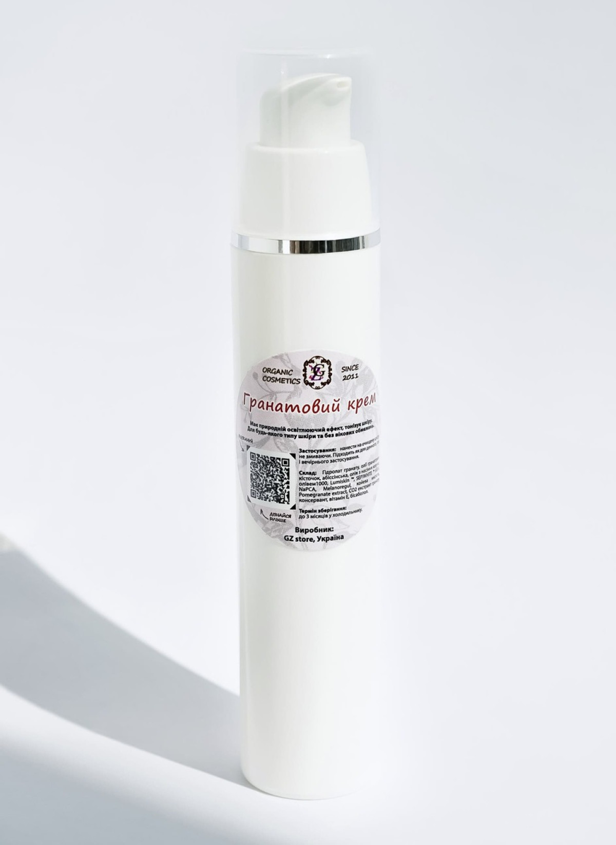 Крем від пігментації «Гранатовий» допоможе швидко і дбайливо очисти шкіру обличчя. Дію активних компонентів направлено на освітлення, тонізування шкіри та надання їй еластичності. Легкий крем для усіх типів шкіри. Фактор УФ-захисту крему SPF 25.