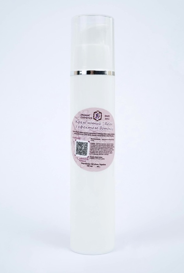 Крем з ефектом ботоксу Relax - ефективний антивіковий засіб комплексної дії. Це нічний крем. Він зробить непомітними мімічні зморшки, розгладить «гусячі лапки» біля очей та відновить шкіру в місцях найбільшого скупчення зморшок.