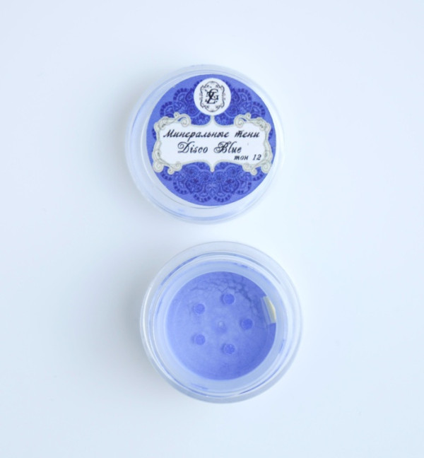 Мінеральні тіні насиченого блакитного кольору «Disco Blue» в залежності від нанесення можуть створювати на повіках ефект від ніжно-блакитного до насиченого макіяжу. До складу косметики входять тільки натуральні мінеральні пігменти, які не викликають подразнення і алергічних реакцій.