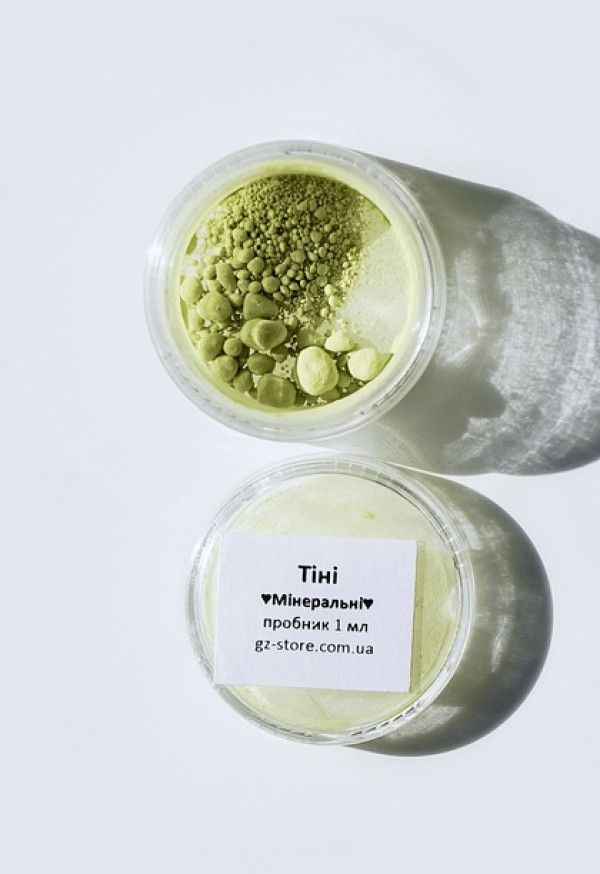 Мінеральні тіні теплого матового салатового кольору «Німфа». До складу косметики входять тільки натуральні мінеральні пігменти, які не викликають подразнення і алергічних реакцій.