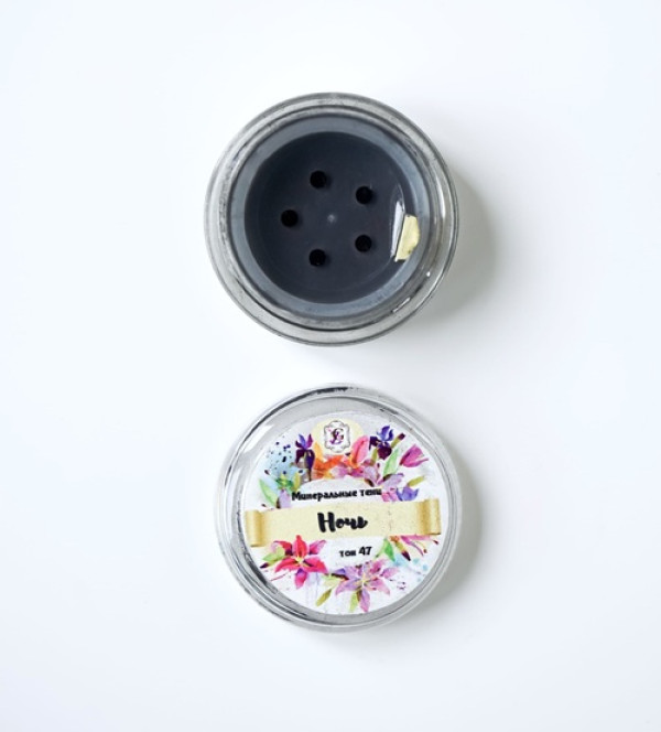 Слідом за днем на землю опустилася ніч, огорнувши її затишній серпанком і поринув все живе в світ сну, світ мрії... Мінеральні матові тіні чорного кольору «Ніч» підійдуть як для виділення і затінення певних ділянок, в комбінації з іншими відтінками, так і для створення макіяжу в стилі «смокі айз». Тіні ніжно лягають, шовковисті на повіках.