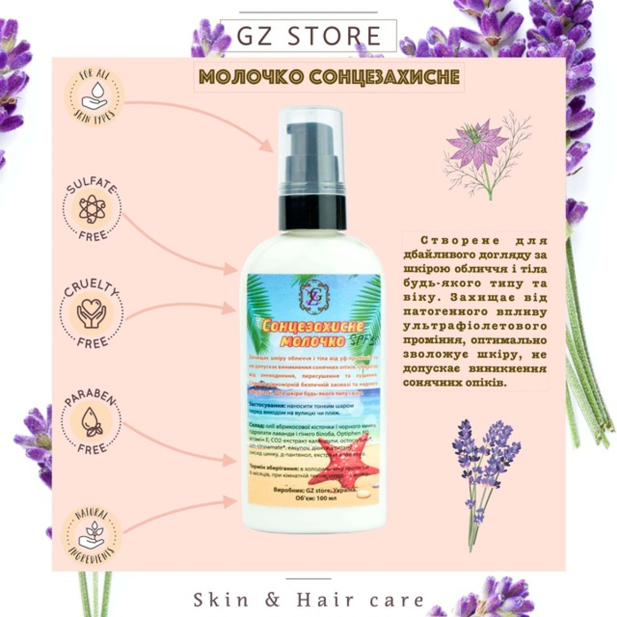 Натуральне сонцезахисне молочко створене для дбайливого догляду за шкірою обличчя і тіла будь-якого типу та віку. Засіб не тільки захищає від патогенного впливу ультрафіолетового проміння, а й оптимально зволожує шкіру, не допускає виникнення сонячних опіків.