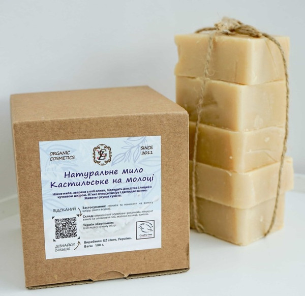 Молочне мило «Кастильське» - ідеальний вибір для дітей та людей з чутливою шкірою.  Ніжне очищення і живлення - основні властивості цього натурального продукту.