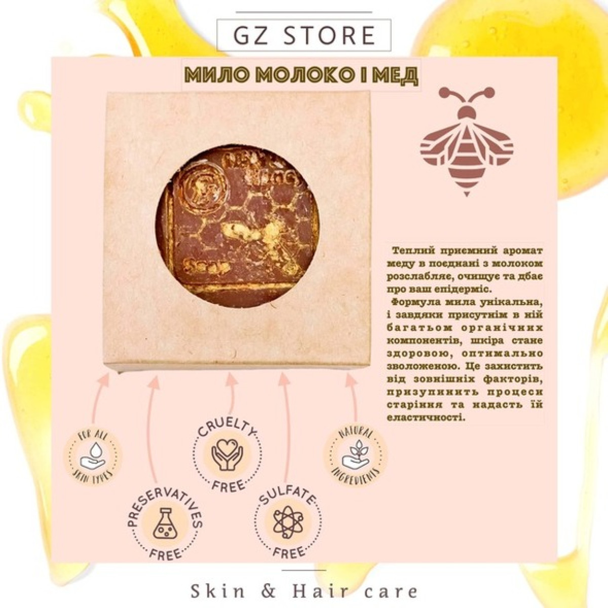 Натуральне мило молоко і мед завдяки надзвичайно приємній текстурі та цілющим властивостям, без сумніву, стане вашим улюбленим косметичним засобом. Адже крім ретельного дбайливого очищення, органічне мило містить корисні компоненти, які покращують стан шкіри та надають їй доглянутого сяючого вигляду. При відсутності алергії на складові можна використовувати як дитяче.