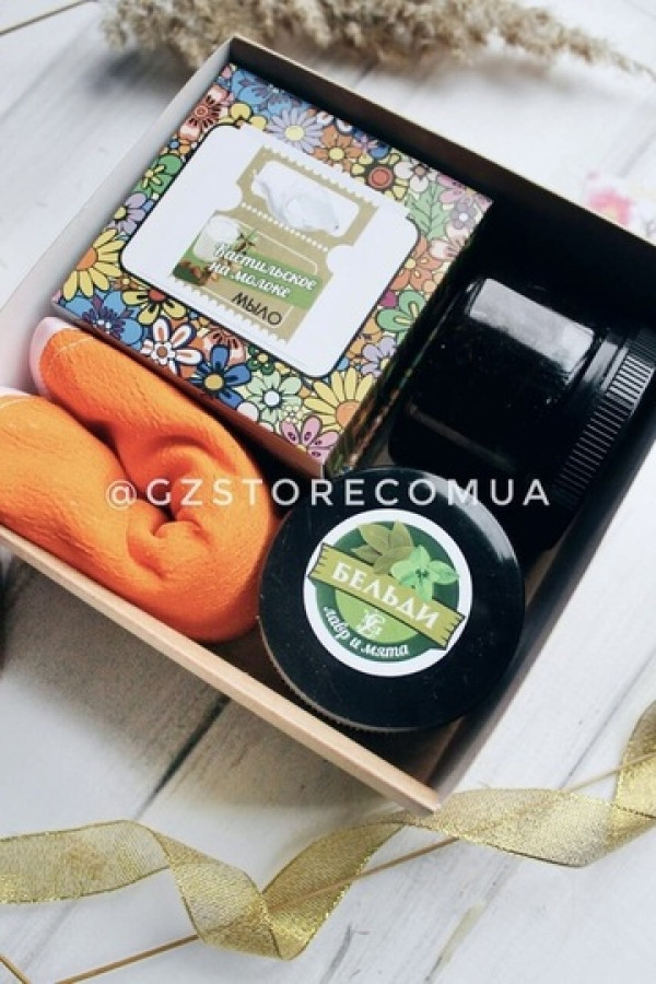 Коробочка з улюбленими милом і бельді для шкіри всіх типів! Також для зручності застосування в наборчик входить рукавичка кессе.