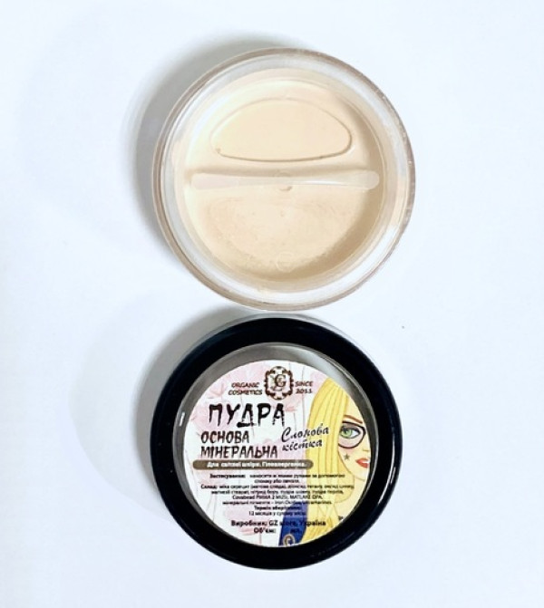 Матова світла пудра-основа «Слонова кістка» м'яко захищає шкіру і знімає запалення. До складу входять тільки мінеральні компоненти і натуральні барвники, основа безпечна для всіх типів шкіри.