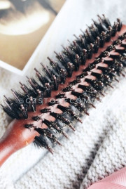 Брашинг з комбінованою щетиною маленького діаметру необхідний для укладання, формування легких завитків і вирівнювання волосся. Нейлонові волокна і щетинки кабана дбайливо розчісують локони, взаємодіють з їх структурою і не пошкоджують, допомагаючи досягти здорового ефектного вигляду.
