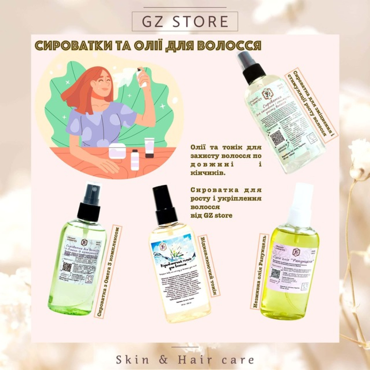 Сироватка для зміцнення і стимуляції росту волосся GZ-store створена для запобігання його втрати у чоловіків і жінок, та з метою зупинення випадіння, а також облисіння на початкових стадіях. В її формулі містяться цілющі натуральні компоненти, високоефективний фітокератин та пептид PROCAPIL ™.