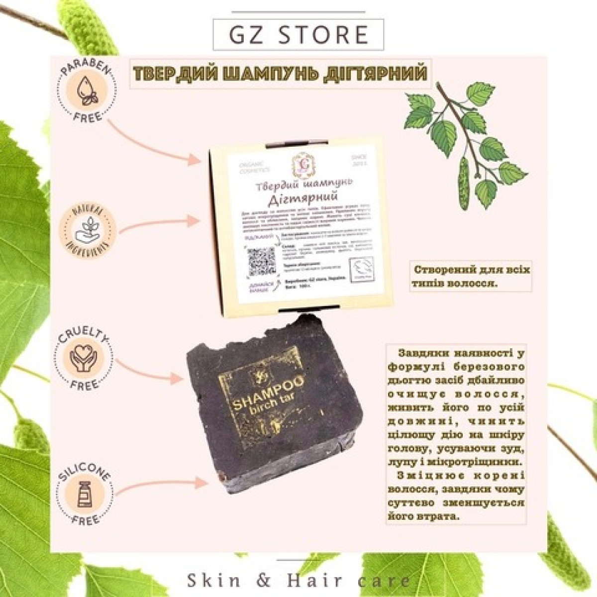 Дігтярний твердий шампунь створений для кращого догляду за волоссям, а також для його зміцнення та регенерації шкіри голови. Підходить для усіх типів волосся та є досить ефективним проти лупи.