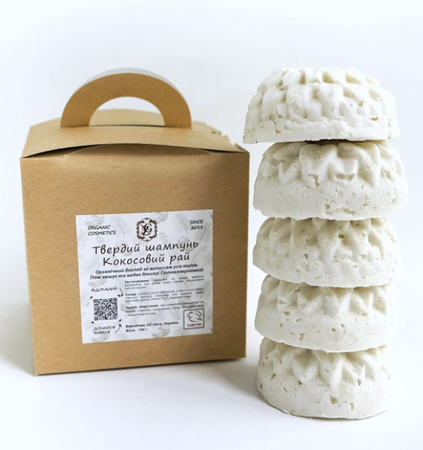 Натуральний твердий шампунь Кокосовий рай очищує і доглядає за волоссям усіх типів. Він дарує йому життєву силу, гладкість і еластичність, а також надає природного блиску.