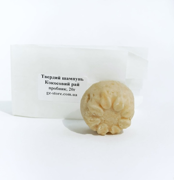 Натуральний твердий шампунь Кокосовий рай очищує і доглядає за волоссям усіх типів. Він дарує йому життєву силу, гладкість і еластичність, а також надає природного блиску.